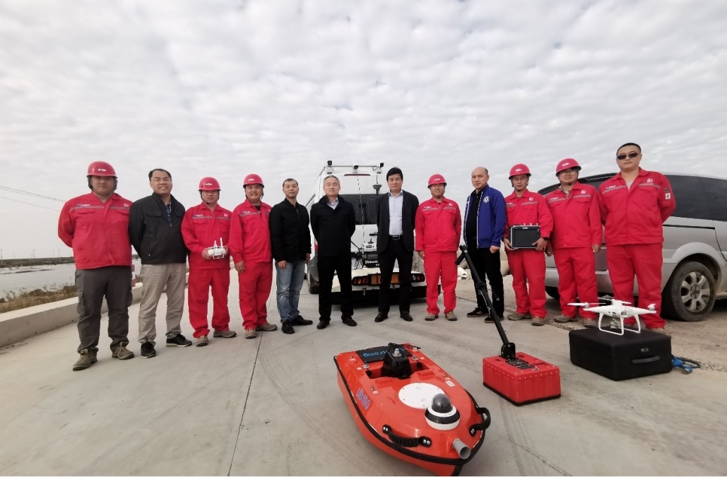此次项目较为复杂,涉及到了公司的多种测量方法,涵盖了水下地形测量、地形图与断面测量、地下结构检测、海洋调查等多个专业。通过前期实地考察研究,最终确定项目作业方案为:无人机+无人船单波束测深系统+三维地质雷达作业系统联合检测,实现“海-陆-空-地”全覆盖。该作业方案相比传统测绘方法提高了工作效率,解决了海洋滩涂地区难以进入测量的难题,数据形式更加多样,成果更加丰富,为桩西采油厂提供了数字高程模型、数字摄影模型以及水下地形模型等产品。