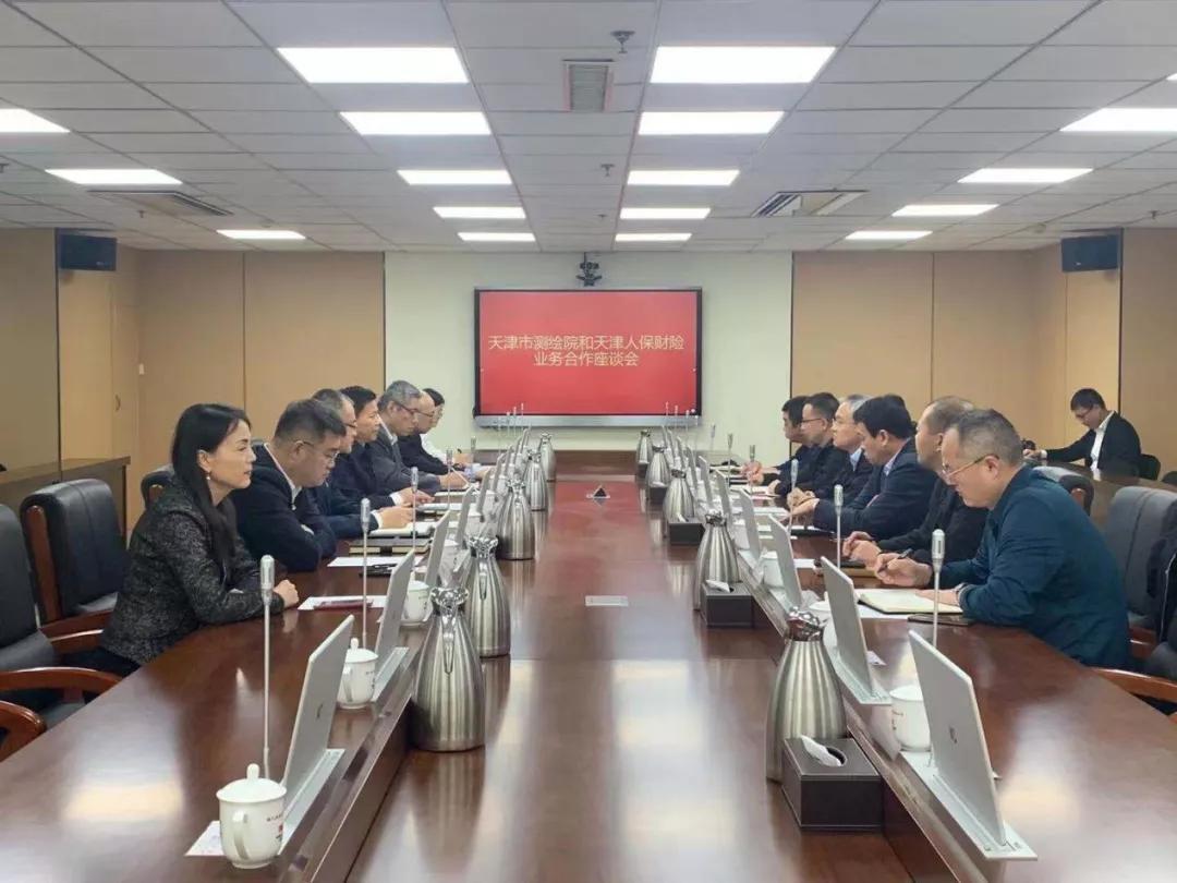 盛中杰对人保财险天津分公司选定天测公司作为业务合作伙伴表示感谢,简要介绍了天测公司的历史沿革与发展历程,以测绘地信服务自然资源主责主业、数字孪生及智慧园区建设、社会民生与城市管理及“非粮非农”等方面的实际案例,讲述了天测公司在辅助政府决策、参与城市管理、服务大众生活等方面发挥的重要作用;对双方基于测绘地信时空信息开展保险创新发展、服务地方经济等充满信息。刘玉财就下一步深入开展合作的具体要点与对方进行了深入交流。