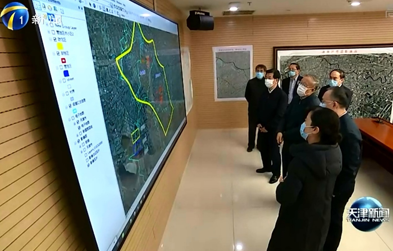 下午3点30分,市委书记李鸿忠,市委副书记、市长廖国勋来到中北镇政府疫情现场指挥部现场指挥疫情防控,通过疫情防控指挥平台中的实景三维影像数据、标注的防控区域和疫情涉及人员在津活动轨迹,综合分析研判疫情形势,与相关区主要负责同志通话,对下一步疫情防控工作做出了重要指示。天测公司借助丰富的测绘地信时空信息搭建的系统平台实现了快速定位、多图展现和时空轨迹追朔等功能,满足了本次疫情指挥的需求,得到了市政府、市卫健委、西青区领导的一致肯定。